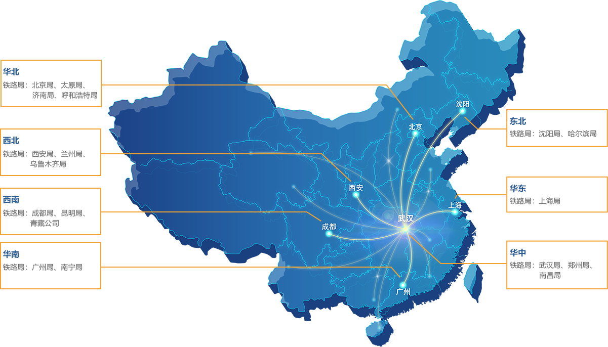 CICT® 拥有完善的、遍布全国的市场营销体系和高素质的营销管理团队,以武汉为中心分布于18个铁路局。
